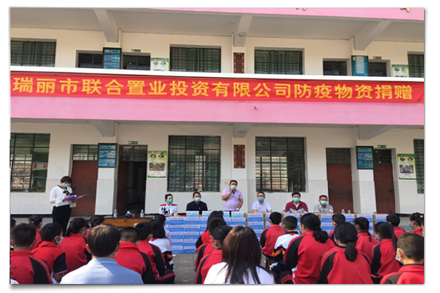 能投聯(lián)合外經(jīng)瑞麗市聯(lián)合置業(yè)投資有限公司在瑞麗市防疫消毒物資緊缺和學生開學在即的情況下,得知瑞麗市姐勒中心小學防疫物資出現(xiàn)嚴重短缺,已對學校正常開學工作造成影響。聯(lián)合置業(yè)公司主動履行企業(yè)政治、經(jīng)濟、社會責任,積極踐行集團核心價值觀,通過多方籌措,采購了一批醫(yī)療防疫物資,包括溫度計400支、洗衣皂2000塊、洗手液500瓶、84消毒液60公斤,有效緩解了姐勒中心小學防疫物資短缺的問題,保障了學校師生的健康。