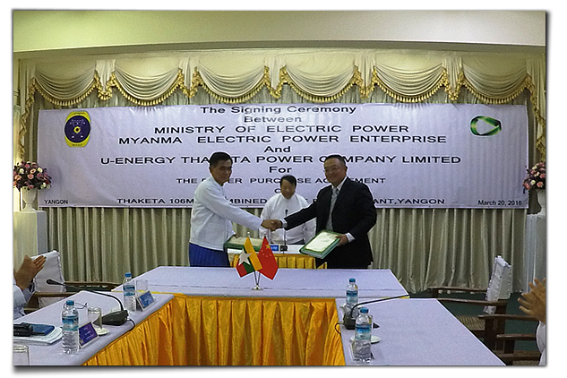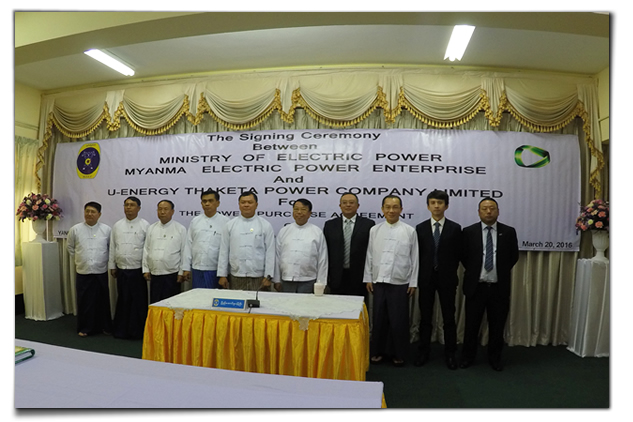 2016年3月20日, “仰光THAKETA天然氣聯(lián)合循環(huán)電廠BOT項目”購電協(xié)議(PPA)和租地協(xié)議(LLA)正式在緬甸仰光簽訂。UREC總裁管毓昆先生與緬甸電力公司(MEPE)董事長U Htein Lwin在協(xié)議上簽字。