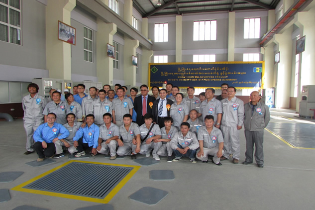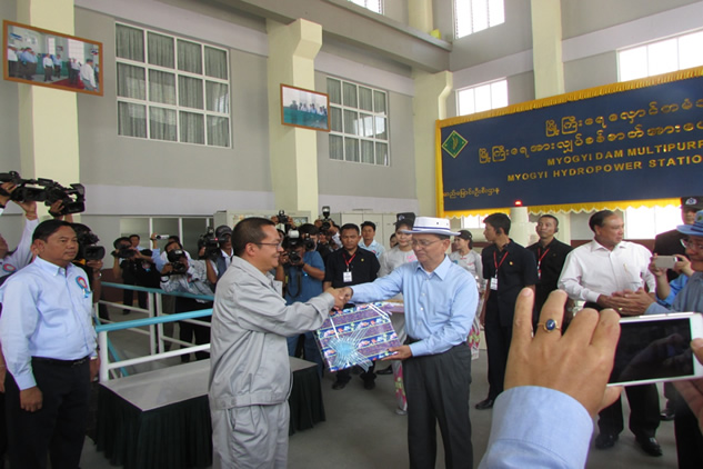 2016年1月1日,由我公司承建的緬甸苗基水電站竣工慶典在苗基現(xiàn)場隆重舉行。本次慶典由農(nóng)灌部部長吳敏來主持,緬甸總統(tǒng)吳登勝、禪幫州長、農(nóng)灌部、電力部部長及副部長等官員出席。我公司總經(jīng)理管毓昆、項(xiàng)目部經(jīng)理李湘寧、開發(fā)部經(jīng)理董凡、仰辦商務(wù)代表馬笑佳等人應(yīng)邀出席。總統(tǒng)吳登勝參觀了電站,對(duì)我公司苗基水電站安裝工作進(jìn)行了充分肯定及高度評(píng)價(jià)。
