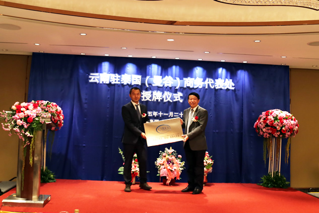 2015年11月28日云南駐泰國商務(wù)代表處、駐孟加拉代表處授牌儀式在曼谷舉行。云南省商務(wù)廳楊慧副廳長出席儀式并授牌。泰國商務(wù)代表處、孟加拉代表處依托企業(yè)——云南能投聯(lián)合外經(jīng)股份有限公司接受了牌匾,并表示將肩負(fù)起促進(jìn)云南與上述兩國經(jīng)貿(mào)合作的職責(zé),盡快熟悉泰、孟兩國經(jīng)貿(mào)市場,尋找合作機(jī)會,實現(xiàn)共同發(fā)展。