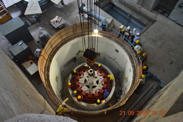 在公司領(lǐng)導(dǎo)及各位同事的大力支持下,現(xiàn)場工程人員克服了各種困難,于2013年9月21日將1號 機(jī)轉(zhuǎn)子吊裝成功,Loikaw 州電力部部長,業(yè)主方HTCT,咨詢方AFC,UREC BLC3項(xiàng)目經(jīng)理及電力 部布魯橋1,II級站高級工程師及現(xiàn)場人員出席了吊裝儀式,對工程的各方面給以了充分的肯定。