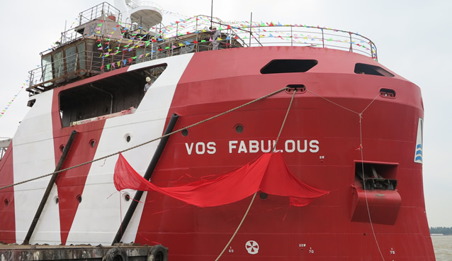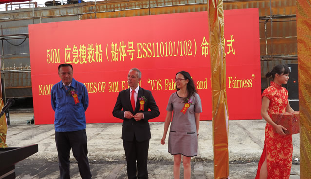 近日,南京東嘉船舶舉行了兩艘50米應急搜救船的命名儀式,這也是在北海油田的應急搜救船首次采用亞洲設計公司設計,并由中國船廠制造。以往此類船型一般是采用歐洲設計,歐洲制造,這標志著國內(nèi)船廠已經(jīng)有能力承建海工高標準的特種船型。 船東方Vroon公司的總經(jīng)理,商務總監(jiān)及前董事長出席,ABS也派代表參加了儀式。