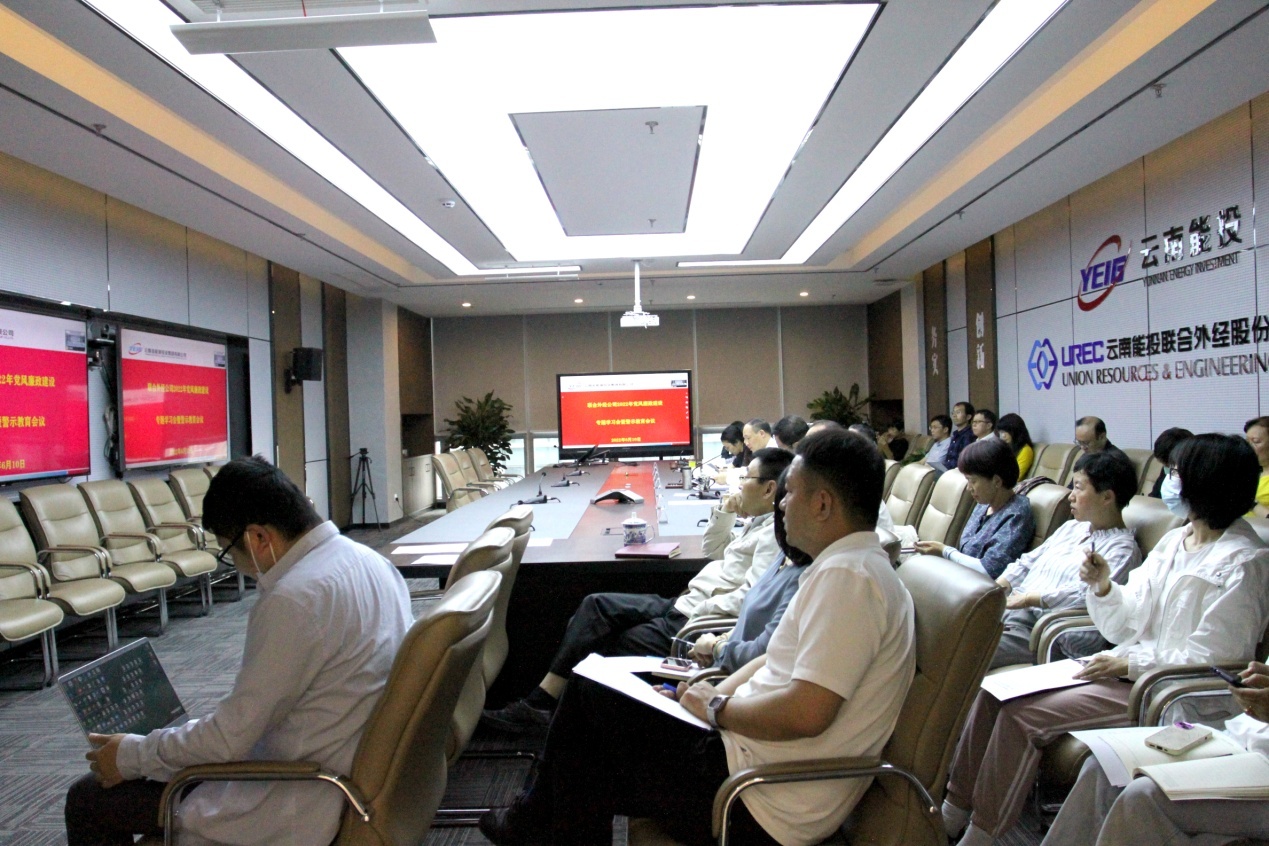 為進一步推進全面從嚴治黨向縱深發(fā)展,加強公司黨風廉政建設和反腐敗工作,助推“清廉能投”建設,6月10日,聯(lián)合外經公司召開2022年黨風廉政建設專題學習暨警示教育會議。公司在昆和駐外領導班子成員、本部和所屬公司中層副職以上負責人40余人現場及視頻參加會議。會議由公司黨委委員、紀委書記楊曉琳主持。