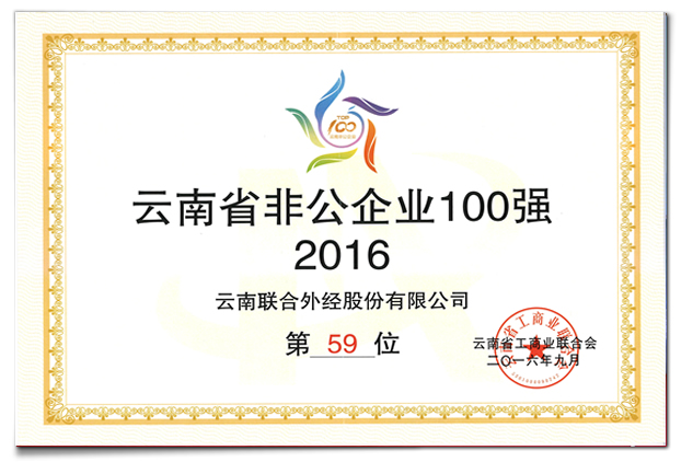 聯(lián)合外經(jīng)再度入選云南省非公企業(yè)100強(qiáng)
