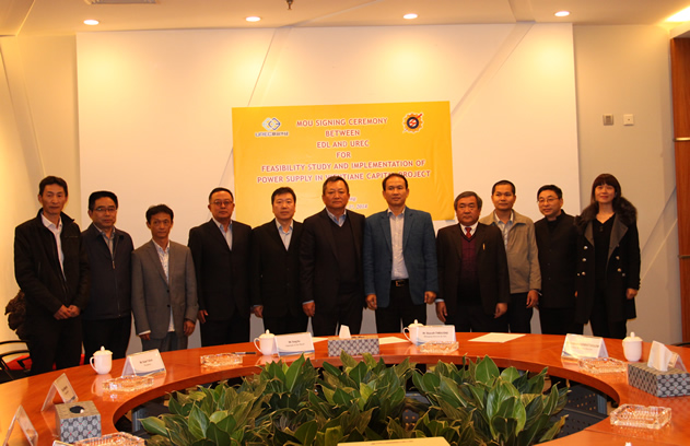 With the full support and guidance of the leaders of Company, Laos power engineering project was implemented smoothly and a significant breakthrough is made in market development. On December 1st, 2014, Mr. Feng Ke, the Chairman of Board, and Mr. Guan Yukun, President, of Union Resources & Engineering Company Limited (UREC), and Mr. Sisavath THIRAVONG, Managing Director, and Mr. Vongmany SONEKETSOULINH, Deputy MD, of Electricité Du Laos (EDL), had a deep negotiation and successfully signed 'Memorandum Of Understanding of Power Supply in Vientiane Capital Project' in Kunming.